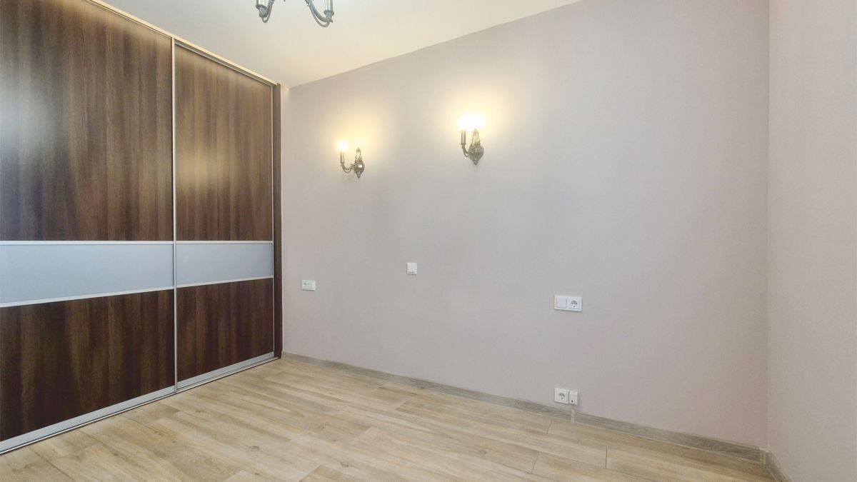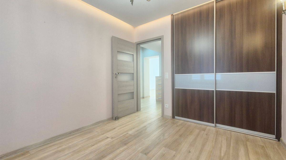 W sypialni znajduje się pojemna szafa w zabudowie, która zapewnia dużo miejsca do przechowywania.