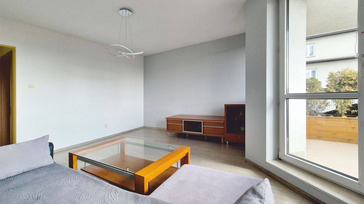 Salon jest jasny i ustawny, z ekspozycją południowo-zachodnią - dzięki temu wnętrze jest dobrze doświetlone przez większą część dnia. Z salonu jest wyjście na duży balkon.