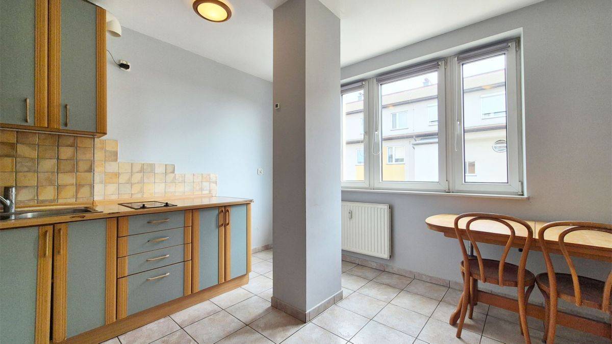 Dużym atutem jest przestronna, ustawna kuchnia z ekspozycją wschodnią oraz możliwością wydzielenia części jadalnianej, co pozwala stworzyć wygodną przestrzeń do wspólnych posiłków.