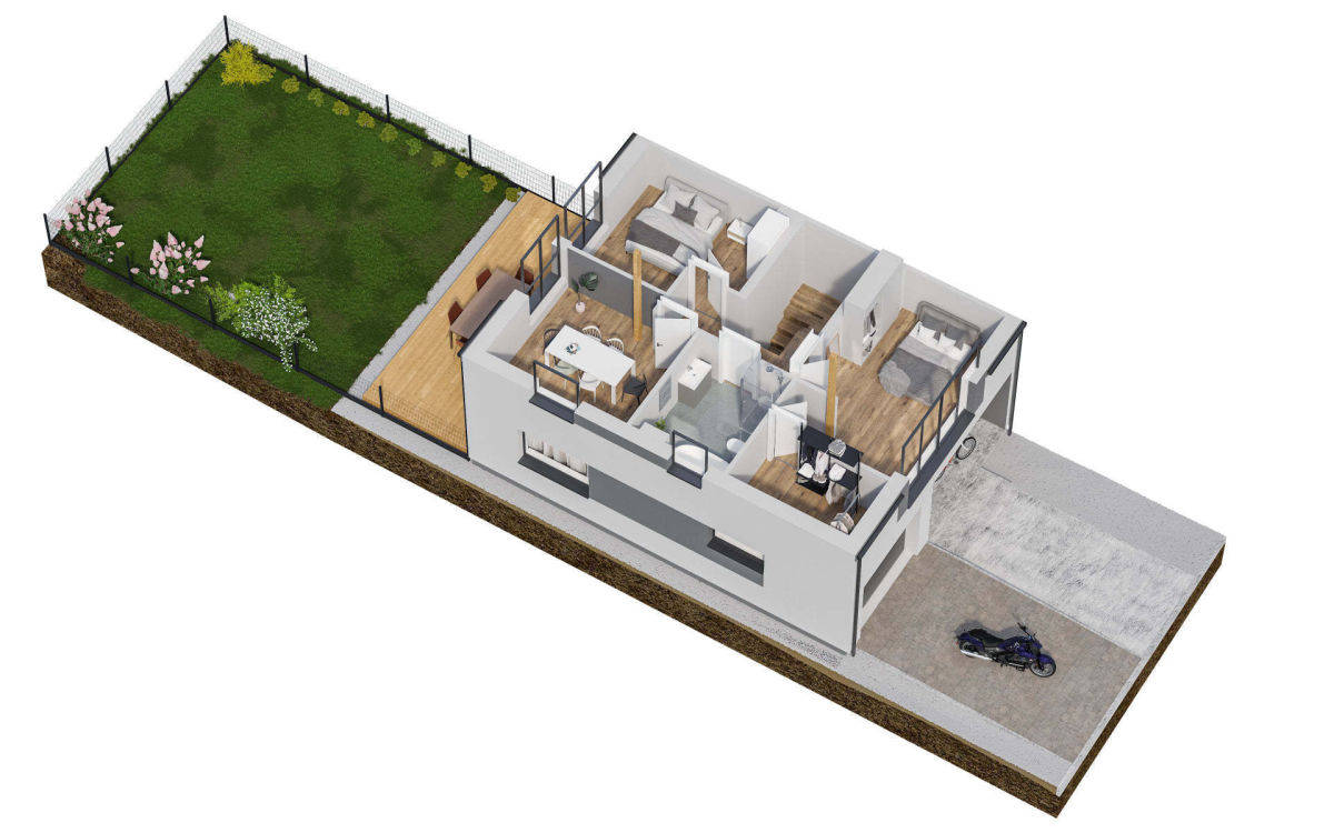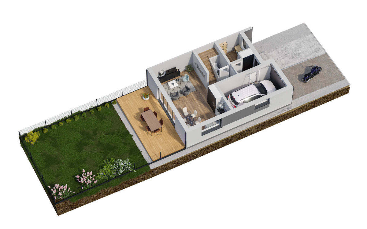 Oferta dotyczy segmentu Srodkowego (3 etap budowy) o powierzchni użytkowej z garażem 121m2 z 3 sypialniami i garderobą.