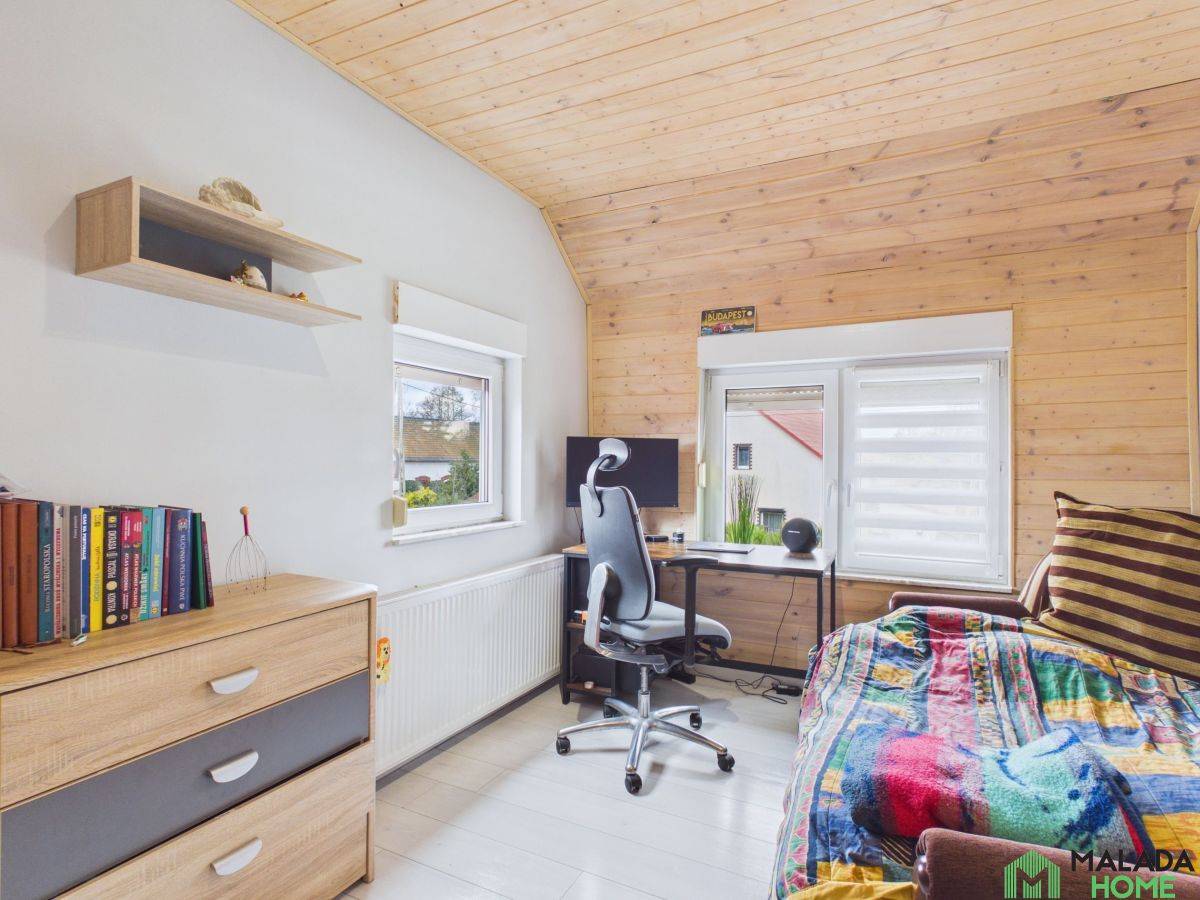 • 3 sypialnie 9 m2, 13 m2 i na piętrze dodatkowy pokój ok. 15 m2.