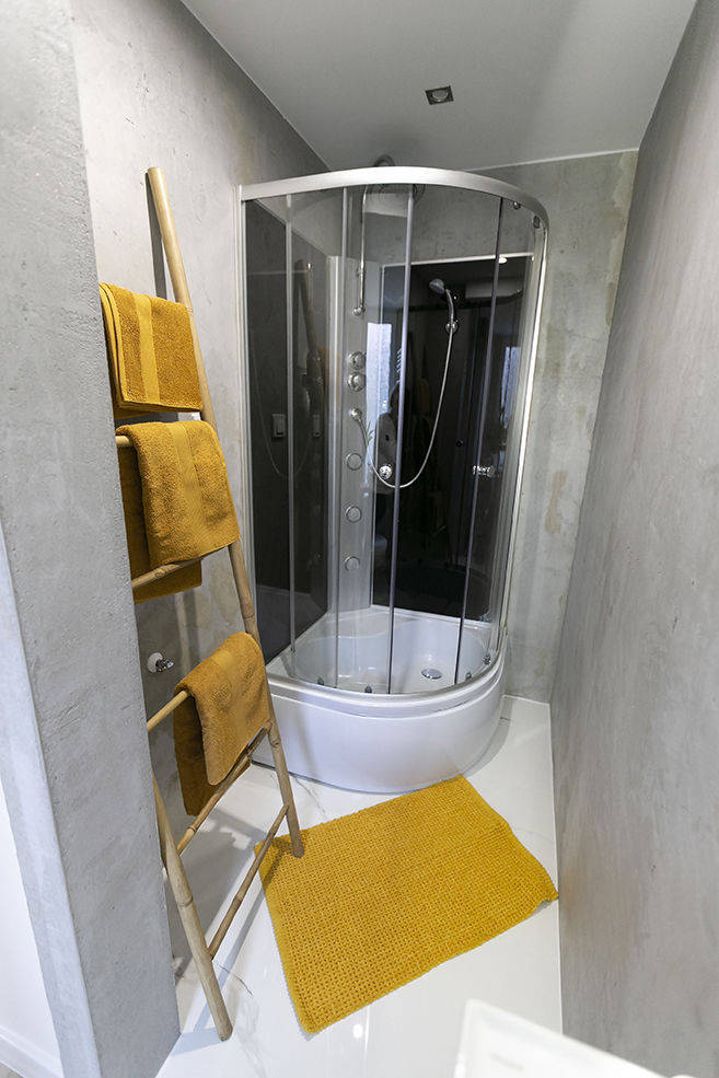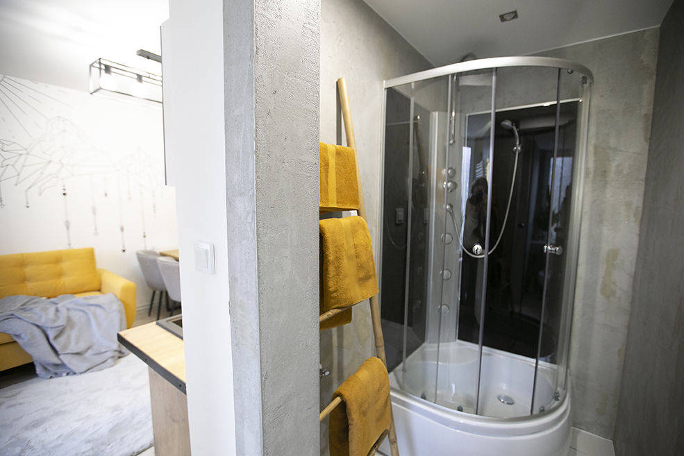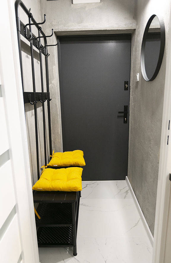 Na 34m2 składają się: korytarz, salon z aneksem kuchennym, sypialnia i łazienka.