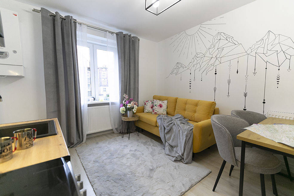 Mieszkanie jest w pełni wyposażone, sprzedawane z nowym sprzętem i meblami. Wszystko na gwarancji.