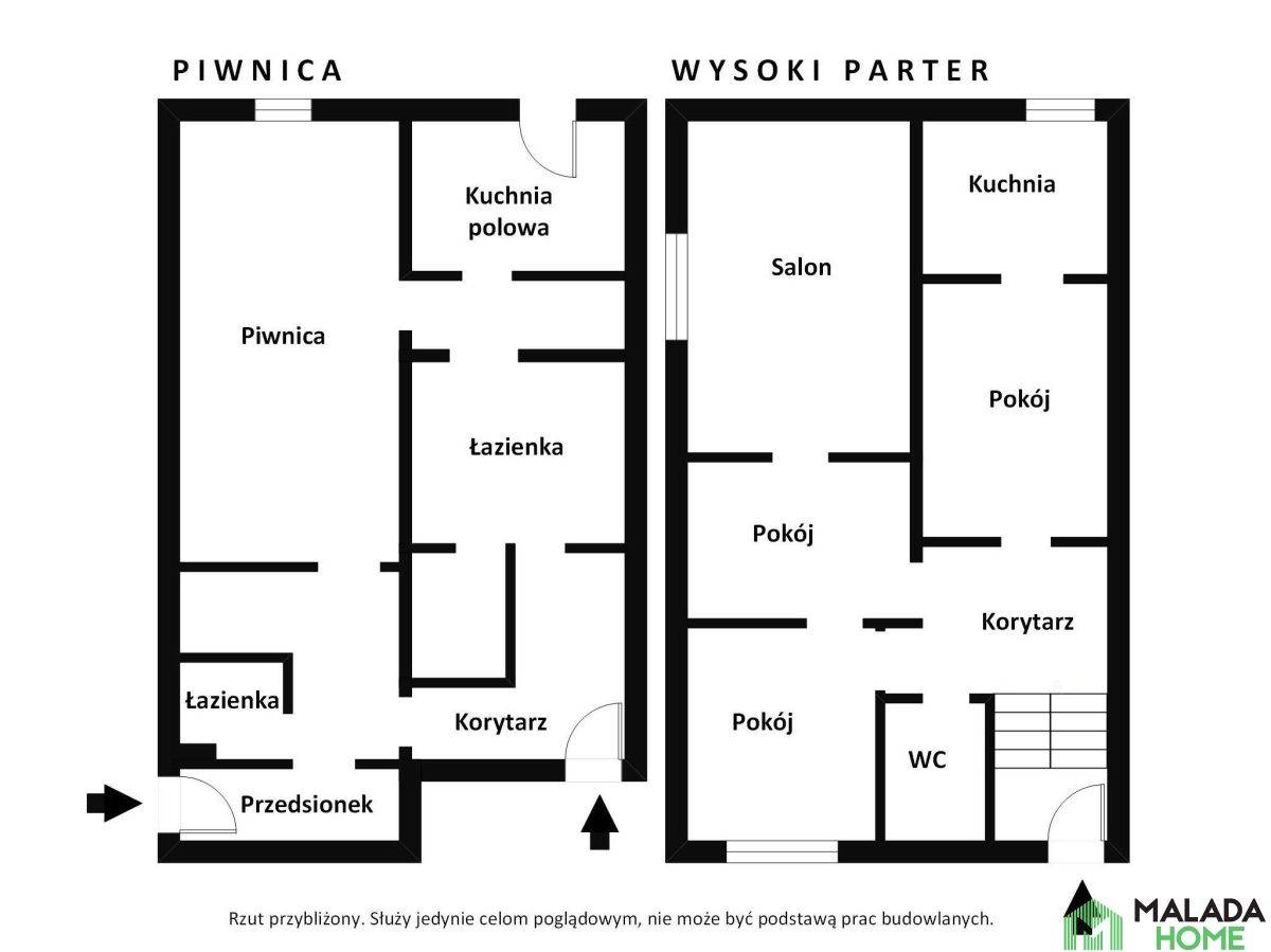 - Dodatkowo: 1 łazienka, 1 WC, piwnica, garaż na 2 auta