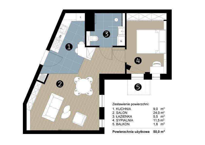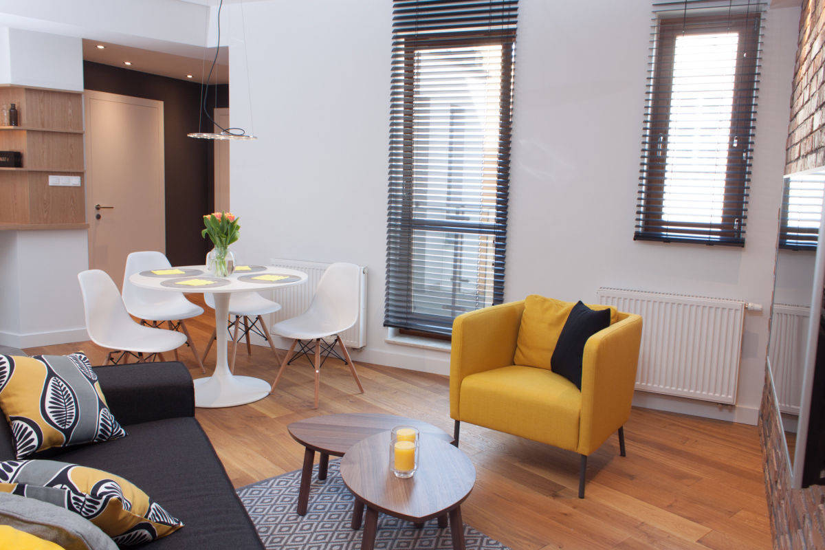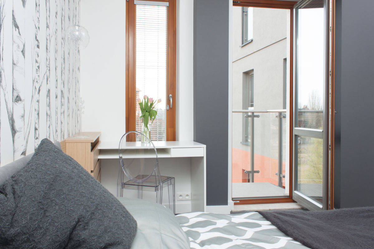 Mieszkanie znajduje się w całkowicie nowym budynku z reprezentacyjnym wejściem i klatką schodową. Na powierzchnię 50 m2 składają się salon z aneksem kuchennym, sypialnia, łazienka. Z sypialni wyjście na balkon z widokiem na Stare Koryto Warty i Starą Gazownię. Ogrzewanie: cieplik miejski. Okna drewniane.