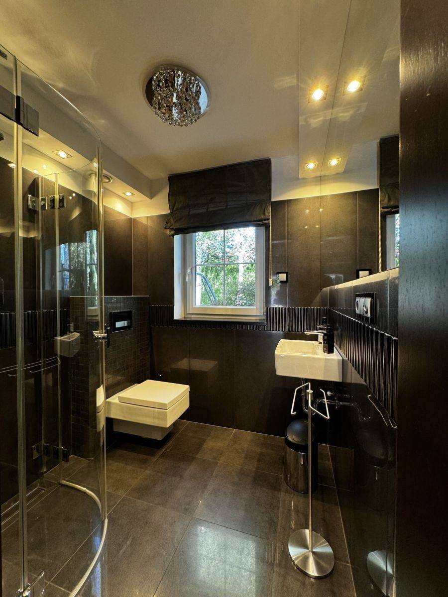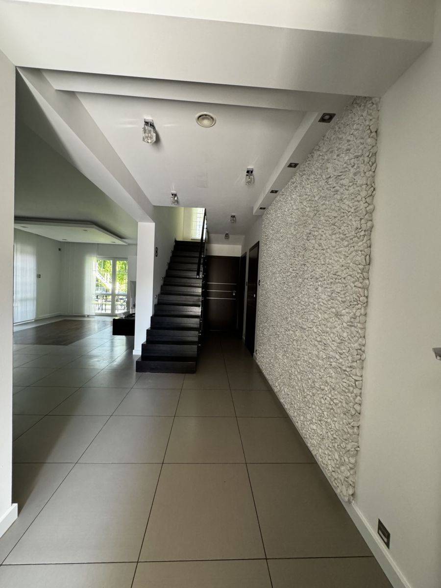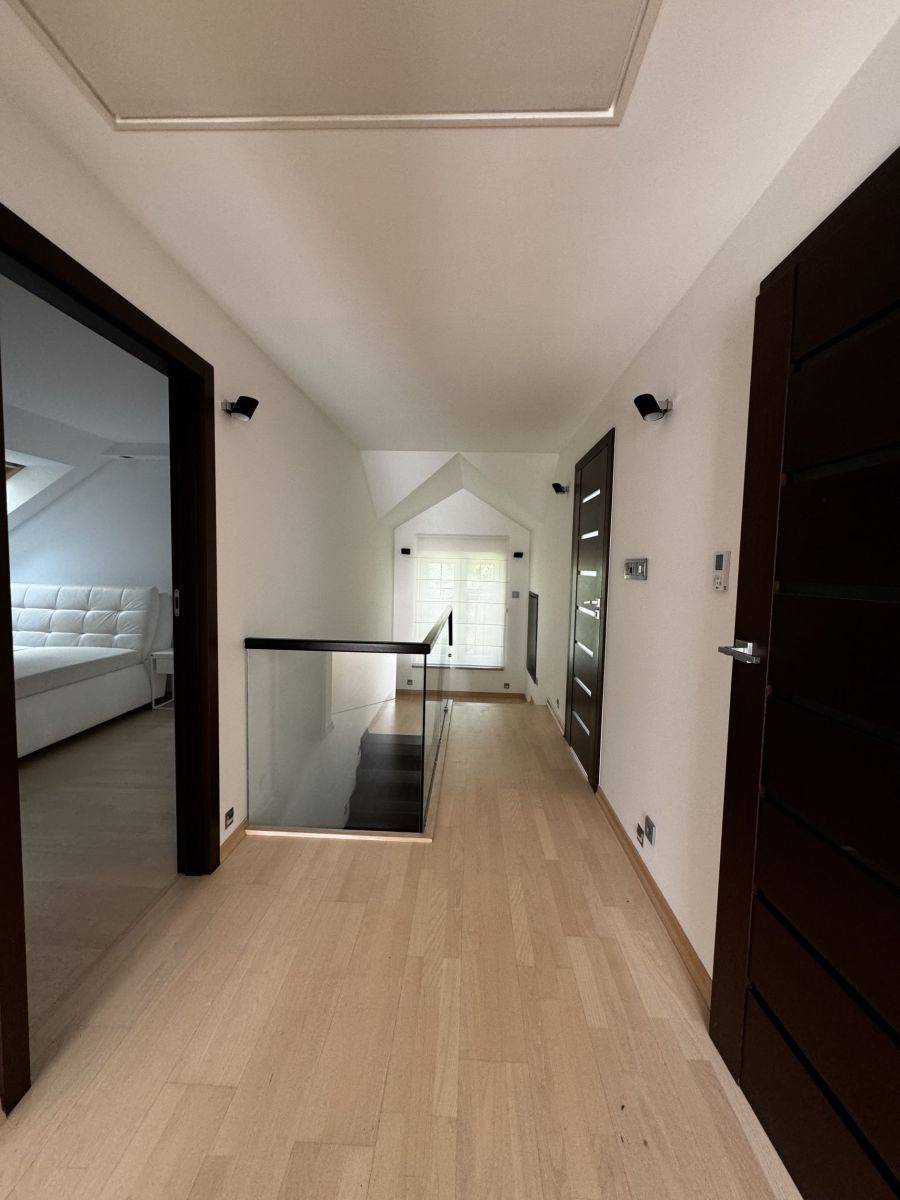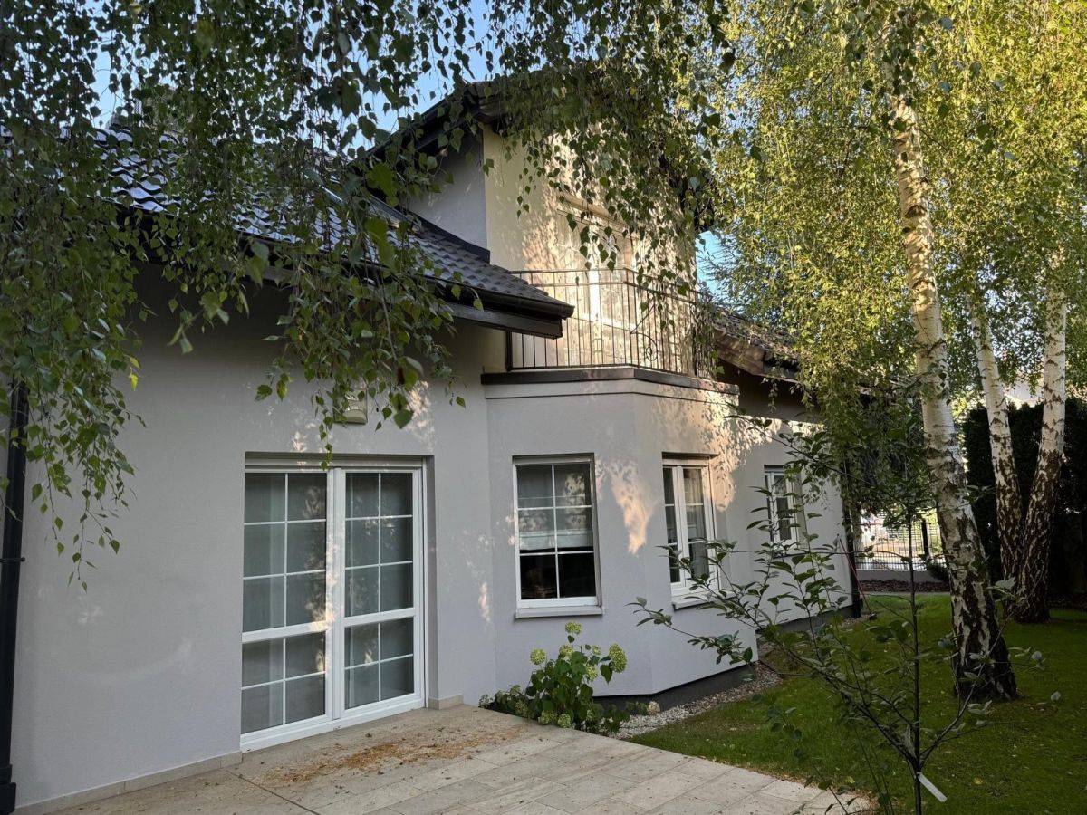 Dom wykończony w wysokim standardzie, klimatyzowany, ogrzewany podłogowo i ściennie, posiada rekuperator. Regulatory temperatury zainstalowane są w każdym pomieszczeniu. W domu zainstalowany jest centralny odkurzacz, okna zabezpieczone są roletami zewnętrznymi sterowanymi elektrycznie, indywidualnie i łącznie, jest również alarm. Garaż wyposażony jest w ładowanie elektryczne samochodu. Ogród posiada podlewanie zdalnie sterowane.