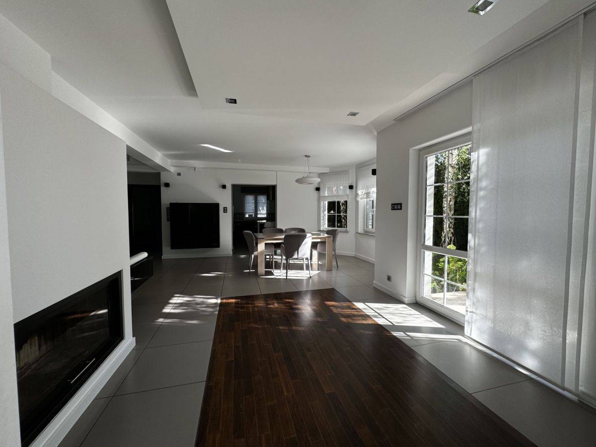 Przestronny salon (32 m2) z kominkiem i wyjściem nazagospodarowany ogród
