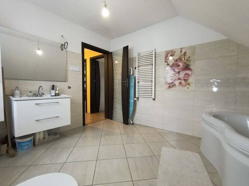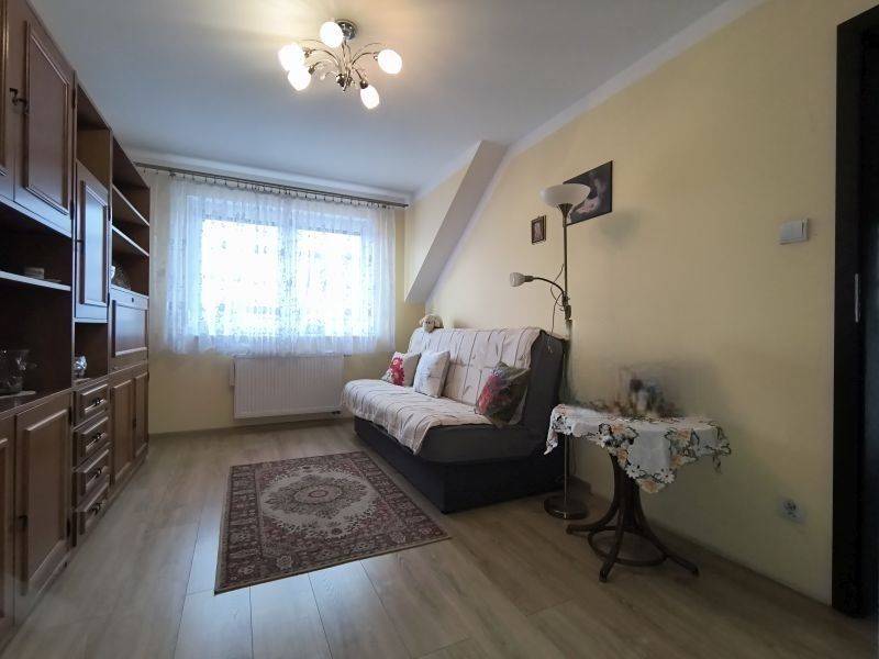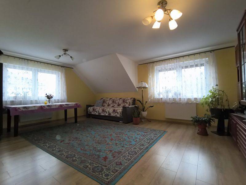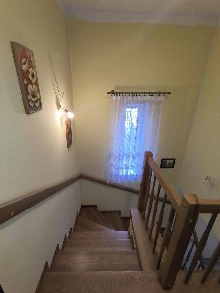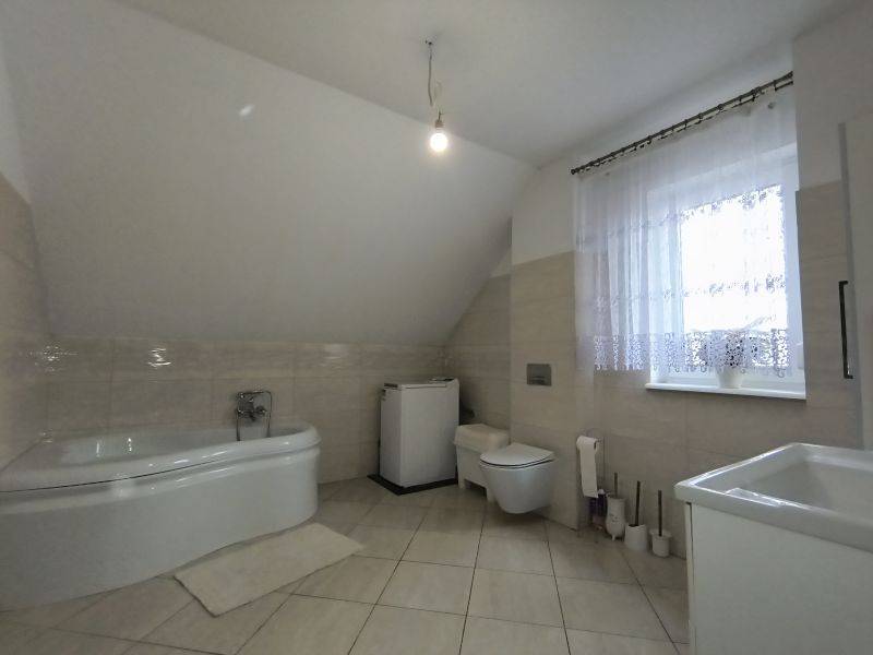 - I piętra z dwoma dużymi pokojami oraz przestronną, dobrze doświetloną łazienka. Istnieje możliwość przywrócenia pierwotnego układu z trzema osobnymi pokojami, co pozwala na dostosowanie przestrzeni do własnych potrzeb.
