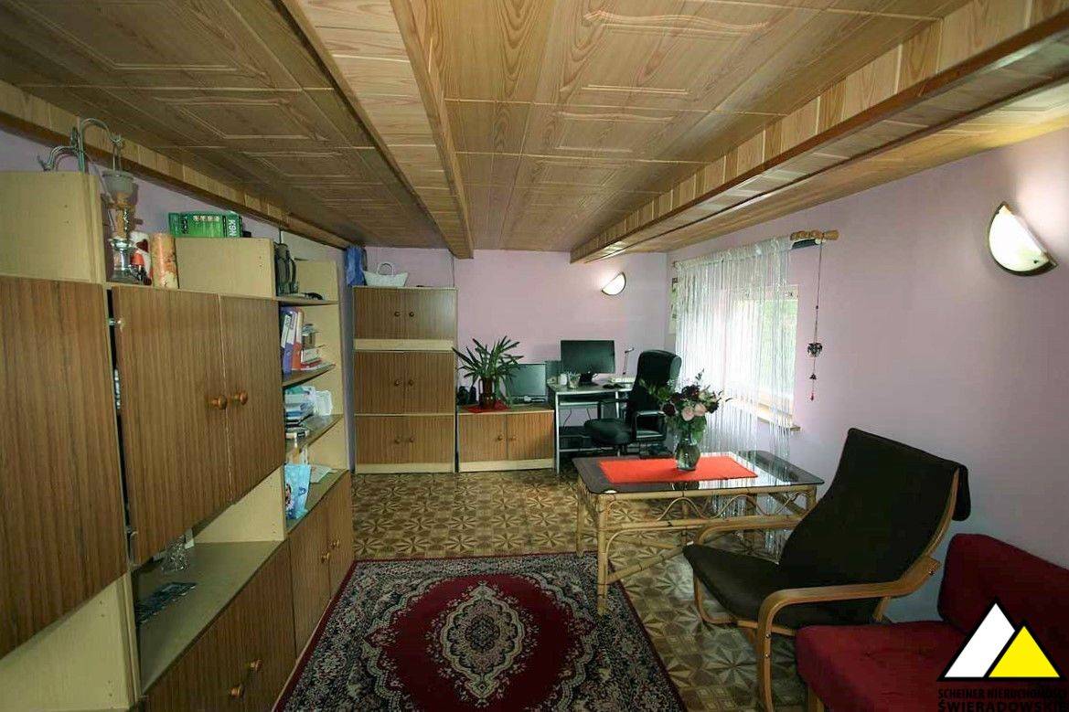 Na parterze budynku znajduje się mieszkanie 4 pokojowe z łazienką do zaadoptowania. Druga część budynku to dawne pomieszczenia gospodarcze.