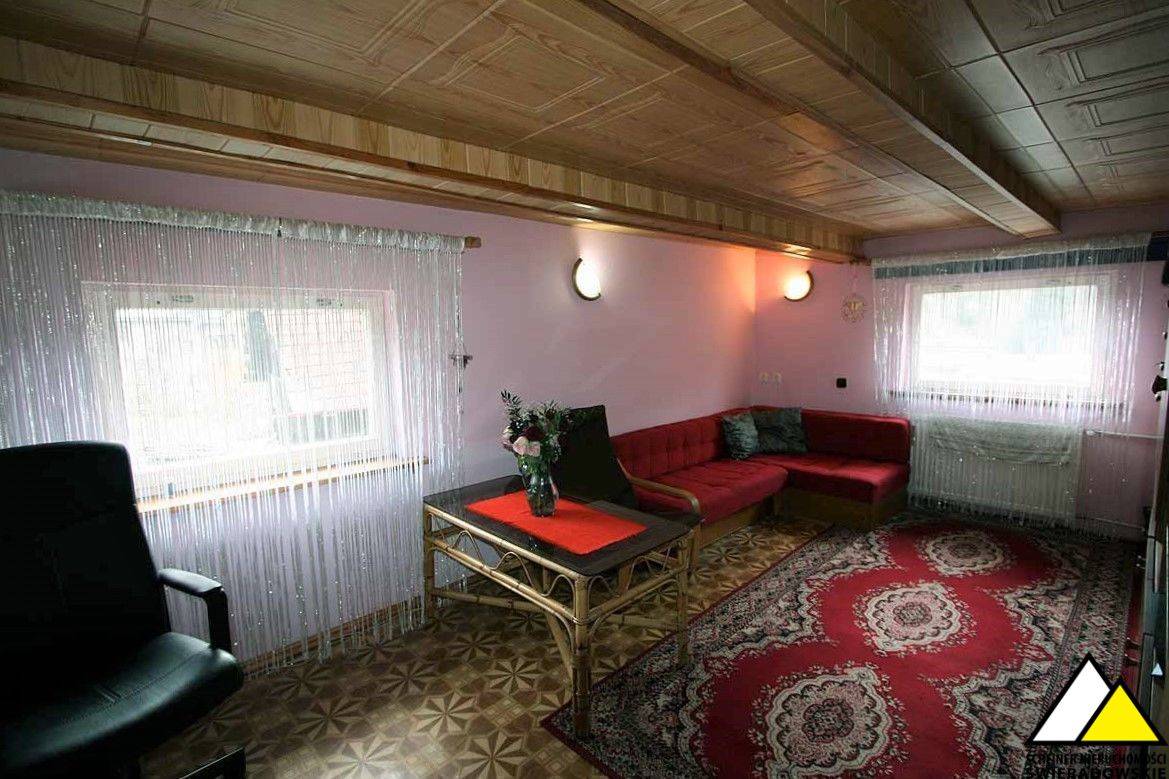 Bryła budynku mieszkalno-gospodarcza. W części mieszkalnej zaadoptowane 4 pokoje, kuchnia, łazienka, wc. Z części okien widok na góry.