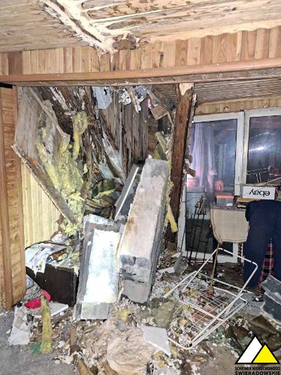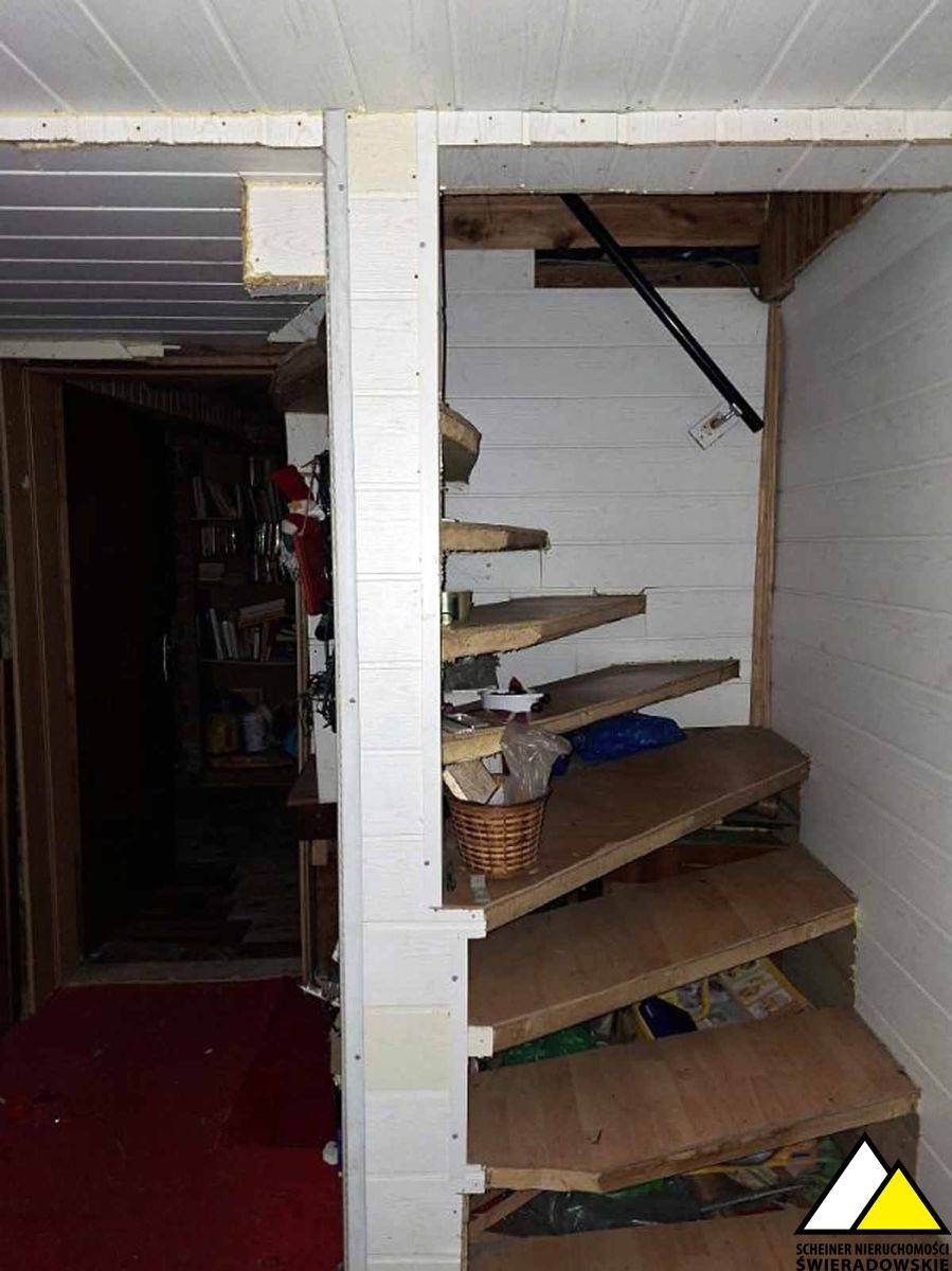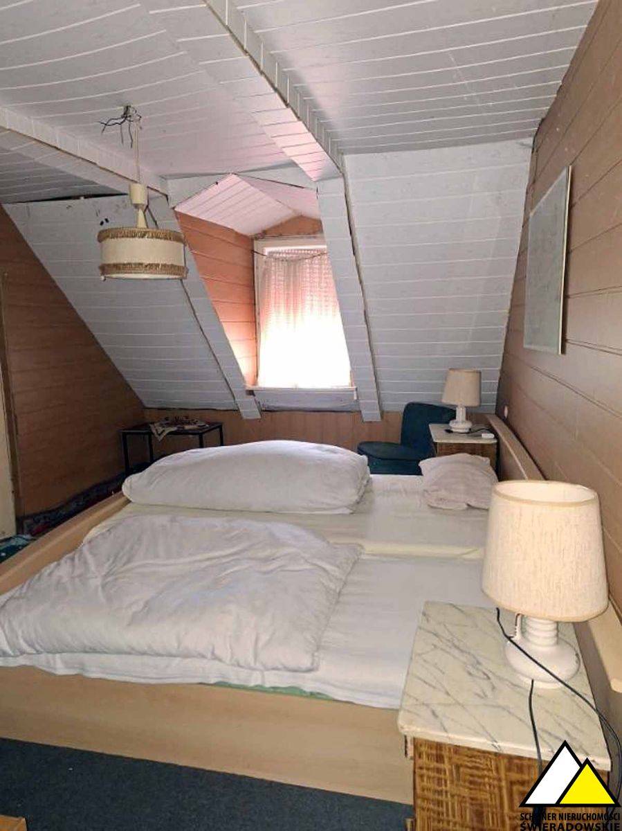 Dwa piętra plus poddasze. Łącznie 3 łazienki, 2 kuchnie, ponad 8 pokoi. Budynek w złym stanie technicznym. Część dachu zawaliła się. Media: prąd, studnia, szambo.