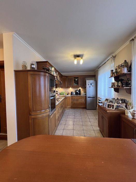 dużą, widną kuchnię połączoną z jadalnią, -