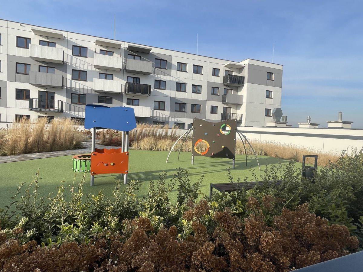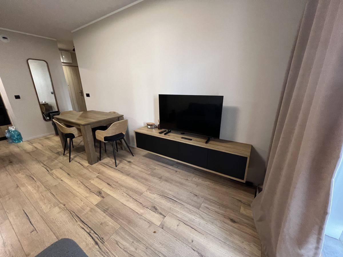 Mieszkanie w pełni wyposażone i umeblowane, składa się z dużego salonu z aneksem kuchennym (20,47 m2), sypialni (11,66 m2), przedpokoju (3,19 m2) oraz łazienki z WC (4,51 m2). Do mieszkania przynależy ogródek o powierzchni 32,81 m2 (prawo do wyłącznego korzystania) oraz komórka lokatorska (3,33 m2).