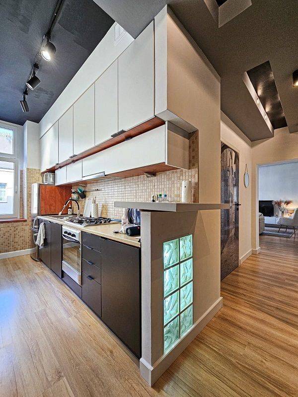 Dwa niezależne pokoje, widna umeblowana i wyposażona kuchnia, fajna łazienka.