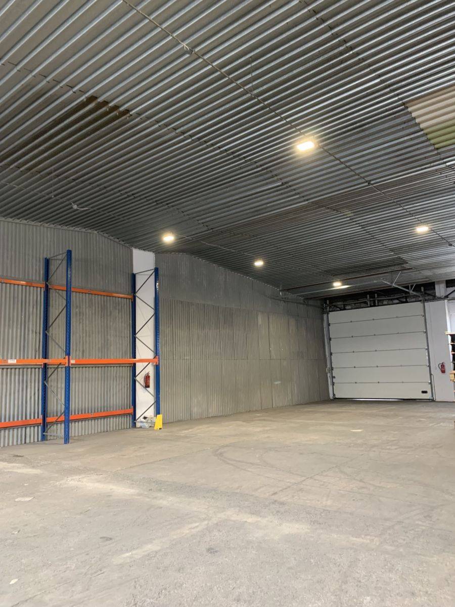 Magazyn jest wyposażony w szeroką bramę o wymiarach 420 cm na 400 cm. Wysokość wnętrza sięga 5,5 metra, co pozwala na składowanie dużych lub wysokich ładunków.