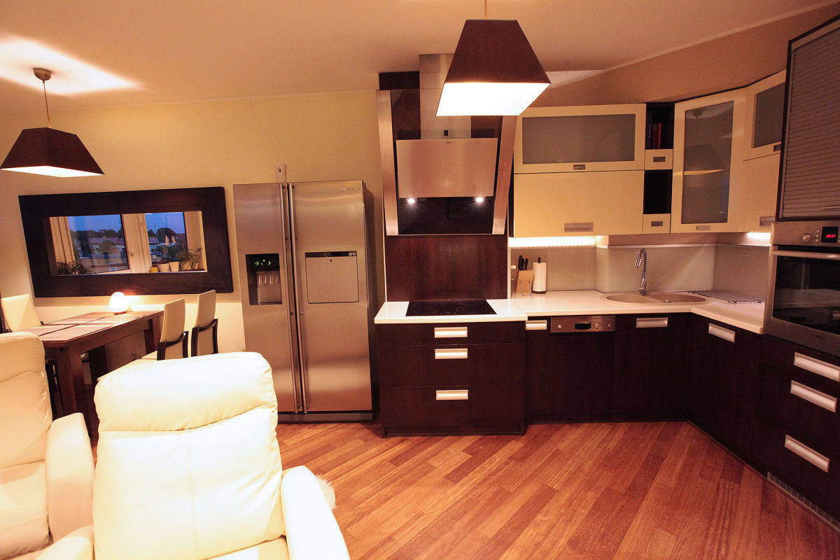 W pełni wyposażona, indywidualnie wykonana na wymiar kuchnia z systemem domykającym BLUM oraz sprzętami klasy energetycznej A+: