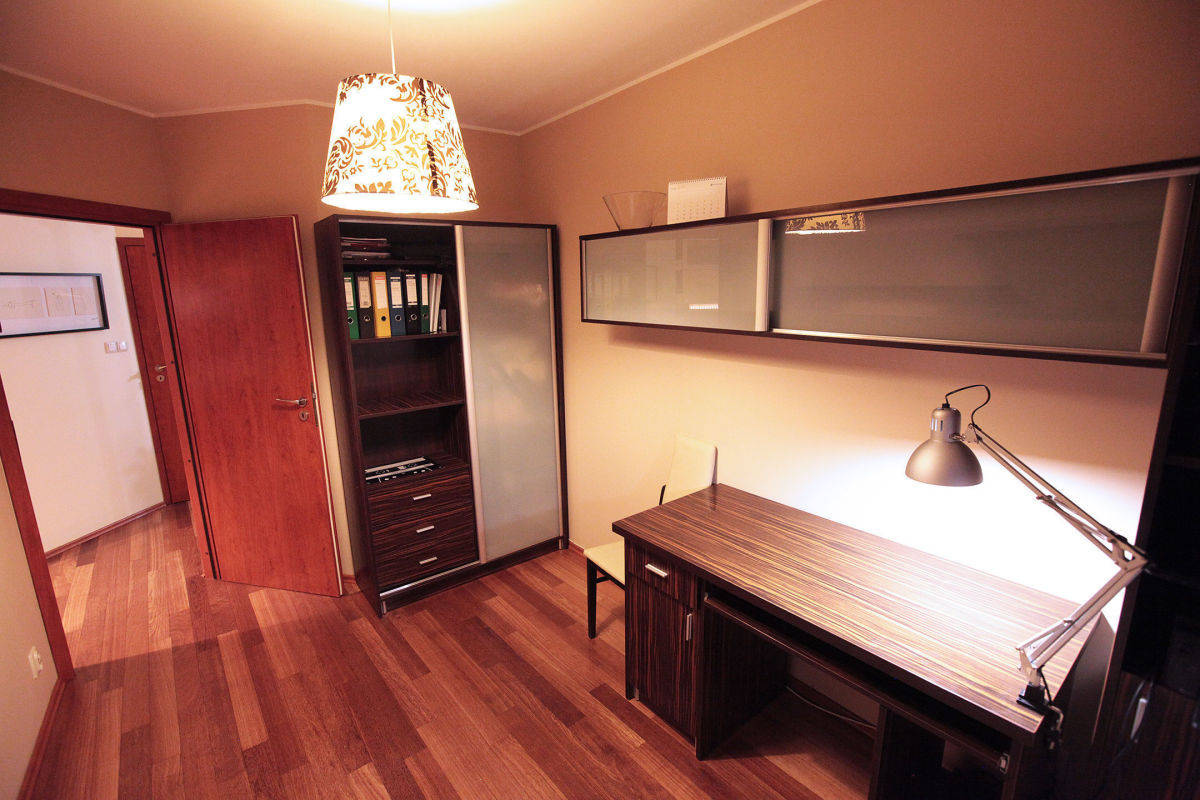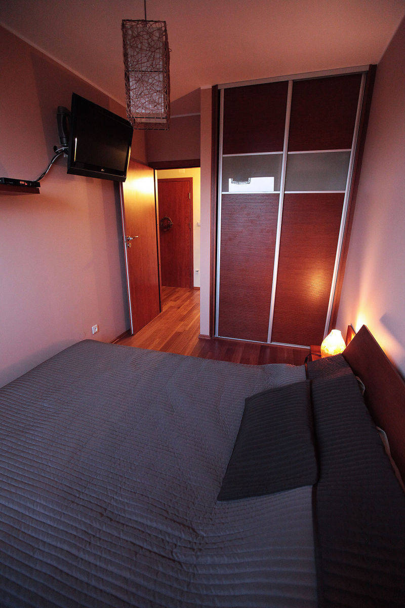 W sypialni znajdą Państwo zabudowę typu Komandor, a w przedpokoju funkcjonalną garderobę z lustrzanymi drzwiami oraz dużą szafę typu Komandor.