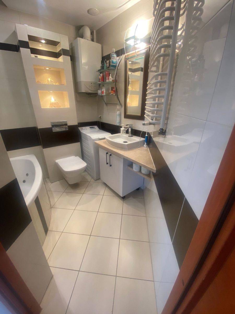 Zostaje pełne wyposażenie, w tym mini wieża z USB, MP3, CD oraz nagłośnienie w zabudowie pod umywalką. Wszystko gotowe do natychmiastowego zamieszkania!