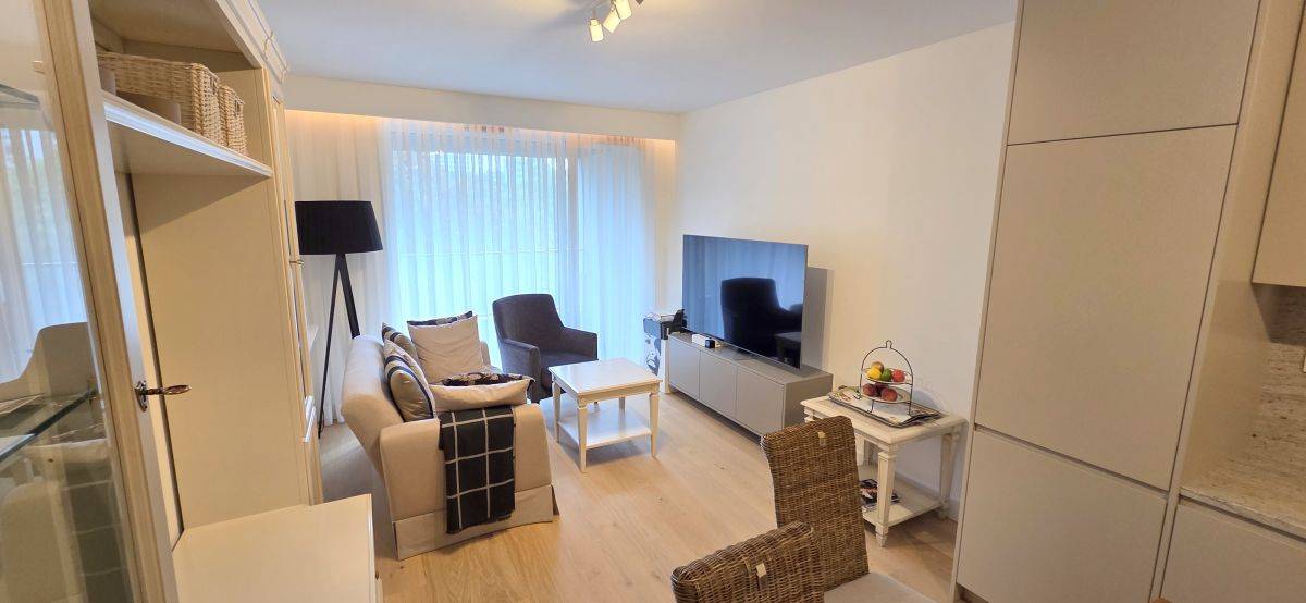 Mieszkanie do zostało w pełni wykończone w bardzo wysokim standardzie. Wszystkie meble oraz sprzęty nowe są całkowicie nowe, zamontowano również klimatyzację. Całkowity remont zakończył się około 6 miesięcy temu. Ogrzewanie w mieszkaniu jest miejskie, a ciepła woda z sieci.