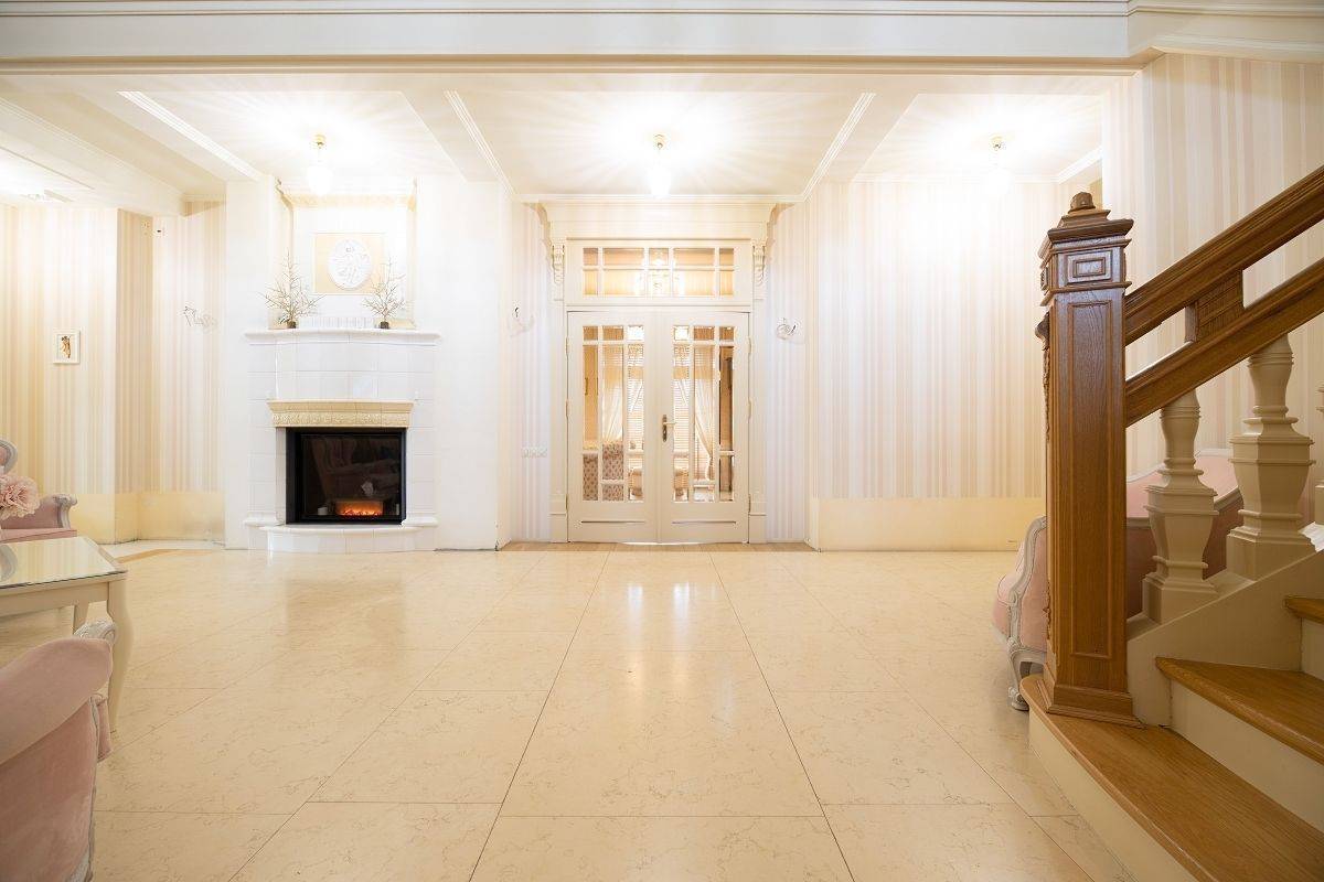 - salon z kominkiem
