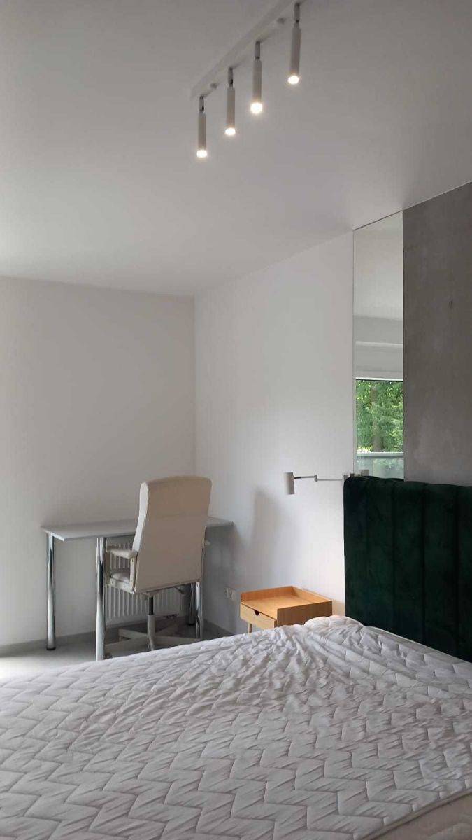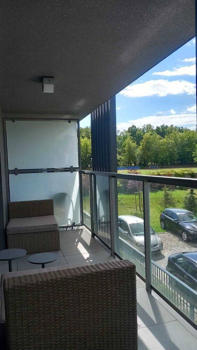 Zapewniamy komfortowe dwupokojowe mieszkanie z przestronnym balkonem (logią o powierzchni 12 m²), które świetnie sprawdzi się zarówno jako apartament dla singla, pary, jak i dla małej rodziny. Przestrzeń obejmuje otwartą kuchnię, funkcjonalny przedpokój oraz elegancką łazienkę. Mieszkanie jest gustownie umeblowane i wyposażone w wysokiej klasy sprzęt AGD, co gwarantuje wygodę na co dzień.