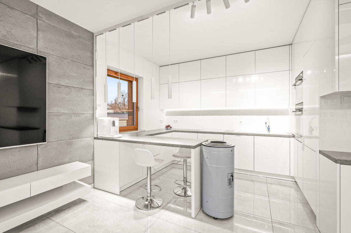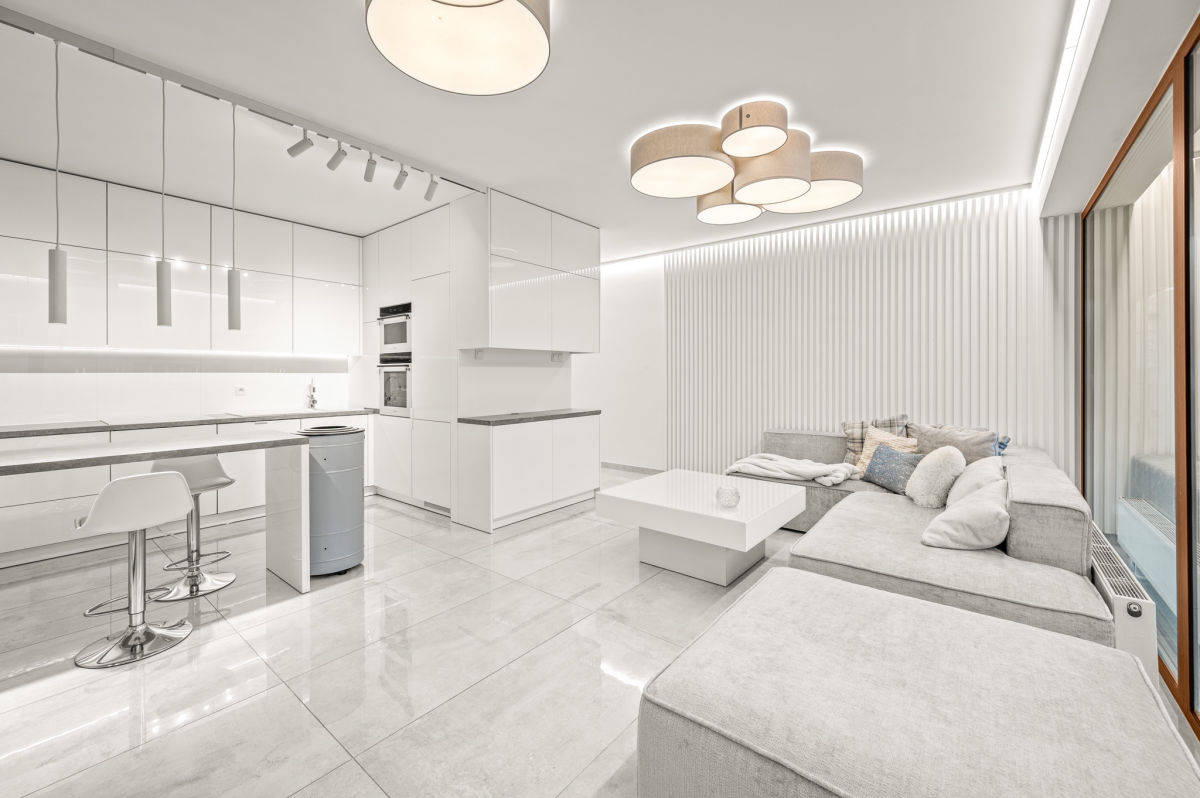 - Salon z aneksem kuchennym - przestronna, dobrze doświetlona strefa dzienna, idealna do relaksu i spotkań.