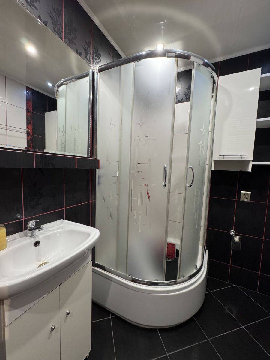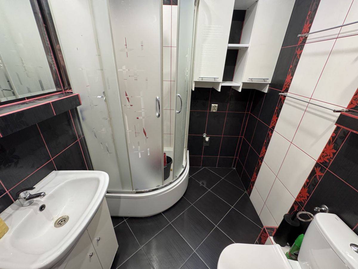 - łazienka z wc wyposażona w kabinę prysznicową,