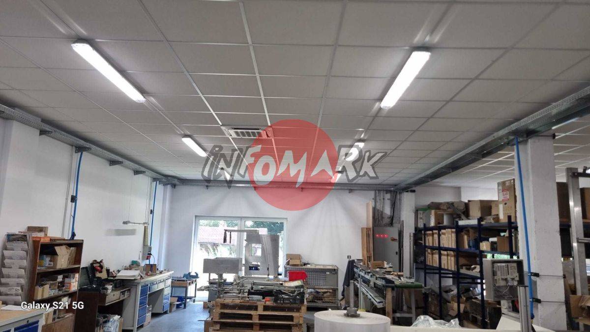 W całym obiekcie zostały wykonane sufity podwieszane, a na części magazynowej została wykonana wylewka przemysłowa, wyremontowane pomieszczenie socjalne, toalety oraz wejście do budynku.