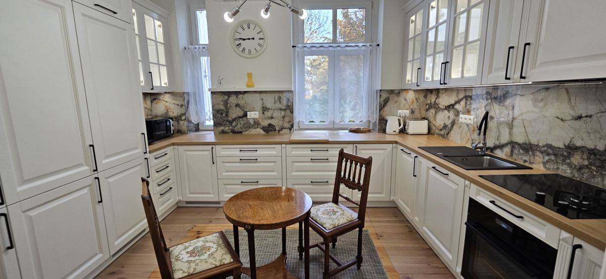 Podczas prac renowacyjnych, które trwały ponad 2 lata, zadbano o każdy szczegół - pięknie odnowiono piece kaflowe, drzwi, klamki, sztukaterię przy sufitach, podłogi. Całości dopełniają oryginalne zabytkowe meble i bibeloty dekoracyjne. To prawdziwa uczta dla koneserów!