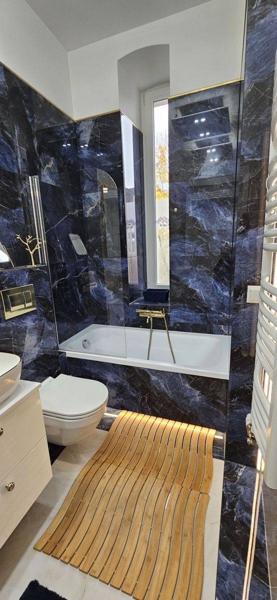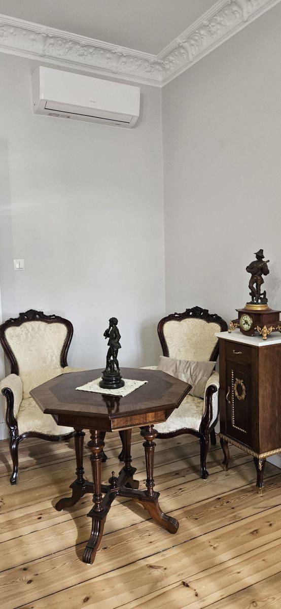 Apartament w pełni umeblowany i wyposażony, ma powierzchnię 99m2, znajduje się na II piętrze w odnowionej kamienicy z 1910r., w trakcie realizacji są jeszcze prace na klatce schodowej. W ciągu najbliższych kilku lat zaplanowany jest również montaż windy.
