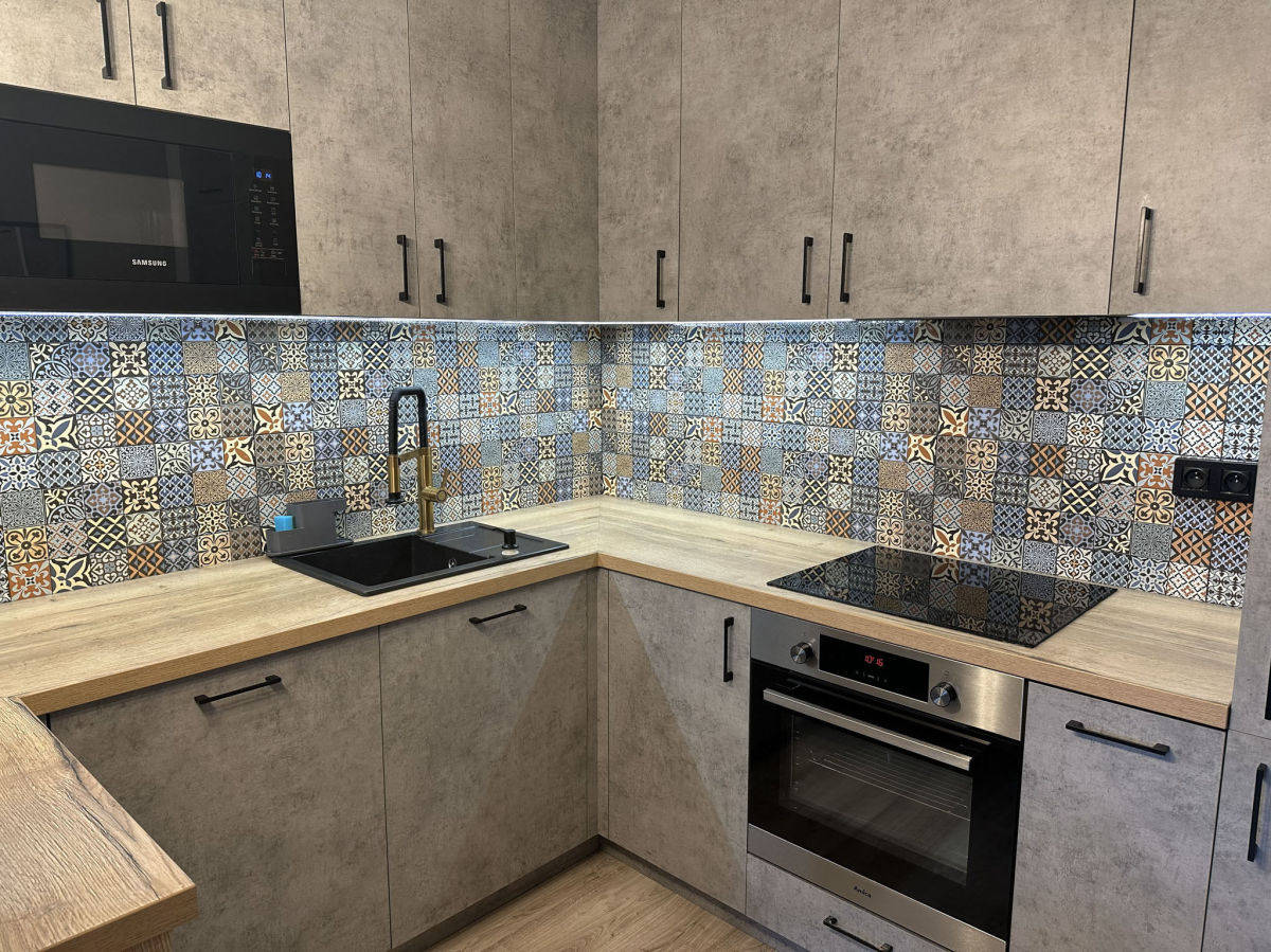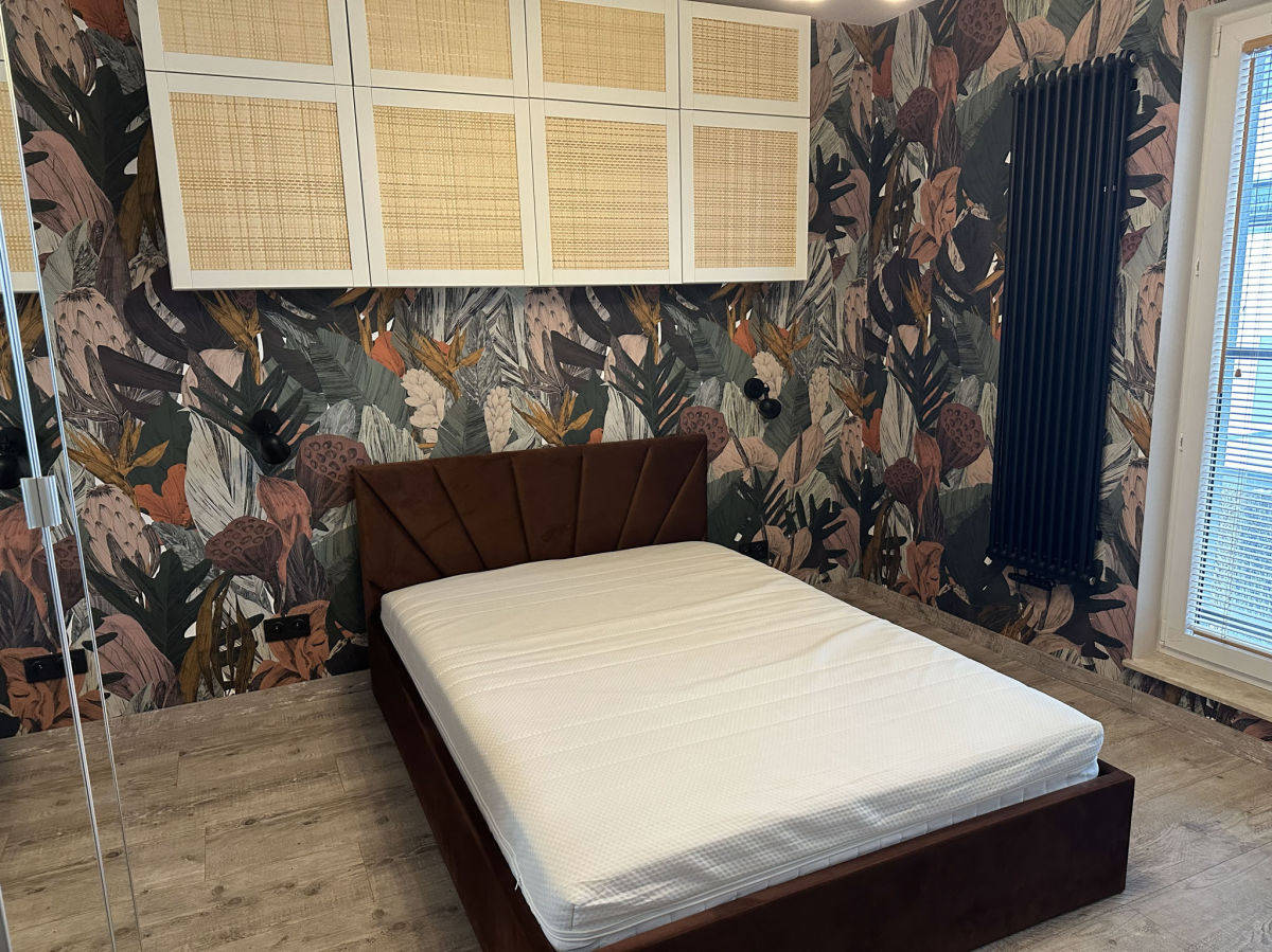 W pełni umeblowane jak na zdjęciach. W salonie rozkładana kanapa, regał, tv. Wyjście na balkon oraz klimatyzacja. W aneksie kuchennym zmywarka, piekarnik, płyta indukcyjna, lodówka, mikrofalówka. W sypialni duże łóżko, biurko, tv oraz wejście do praktycznej garderoby. Łazienka w płytkach z kabiną prysznicową, jest też pralka.