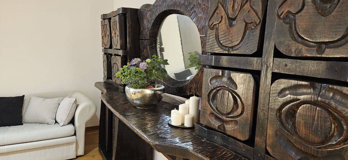- jadalnia (duży stół, krzesła, komoda);