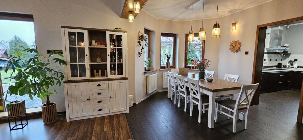 W cenie domu pozostaje zabudowa kuchenna i szafy wnękowe. Możliwość pozostawienia mebli wolnostojących - w cenie do uzgodnienia.
