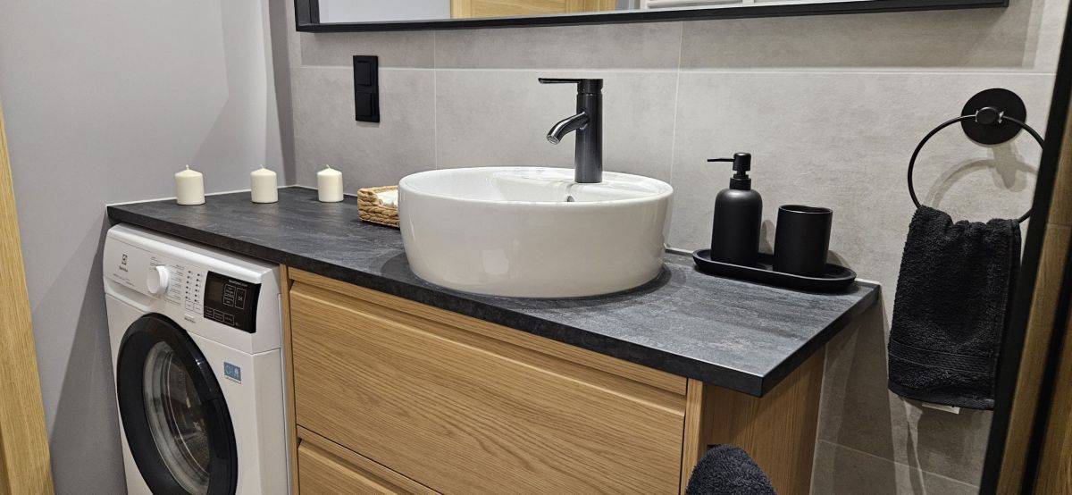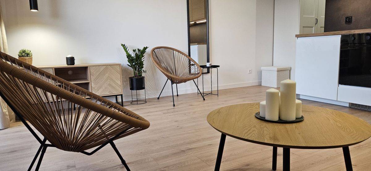 Jest całkowicie umeblowane i wyposażone (w kuchni lodówka, piekarnik, okap, płyta indukcyjna, zmywarka, możliwość doposażenia w zastawę stołową, garnki, sztućce itp).