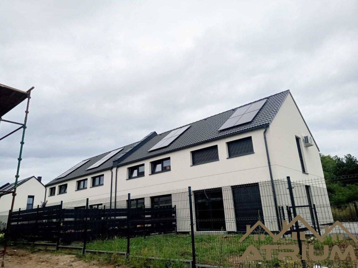 12 segmentów powierzchnia 90,35 m2 (parter i piętro) + opcjonalnie dodatkowo poddasze salon + aneks kuchenny z oknem 3 sypialnie łazienka + WC na parterze ogródki od 49 do 133 m2 przynależne 2 miejsca postojowe
