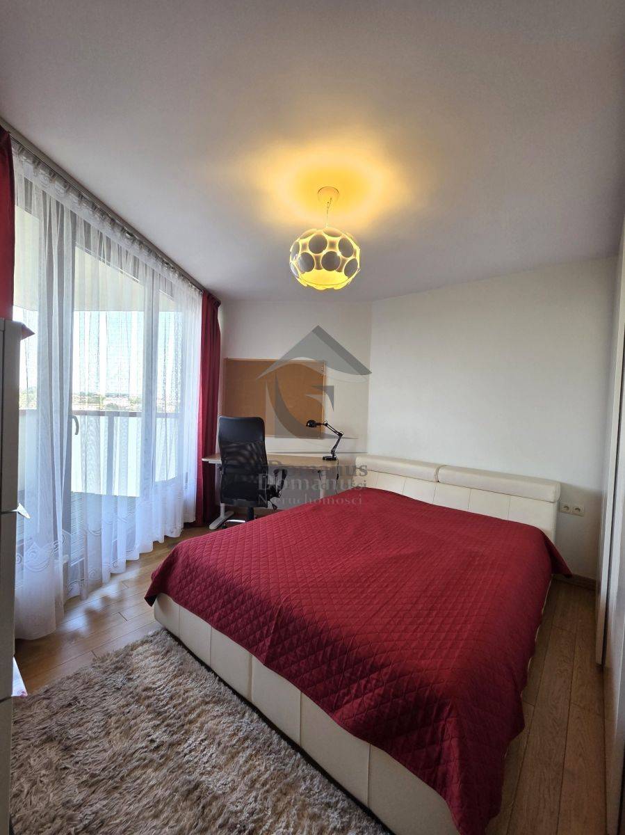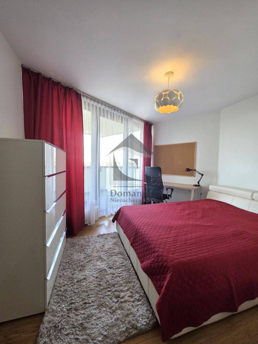 - Przytulna sypialnia z łóżkiem dwuosobowym, biurkiem, szafą garderobianą i wyjściem na drugą loggię
