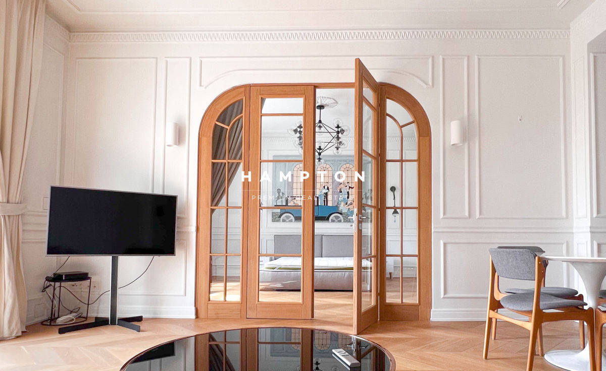 Wnętrze utrzymane jest w eleganckim, ponadczasowym stylu z subtelnymi akcentami art-deco. Duże okna zapewniają doskonałe doświetlenie i piękny widok na park, co daje poczucie prywatności i ciszy mimo centralnej lokalizacji.
