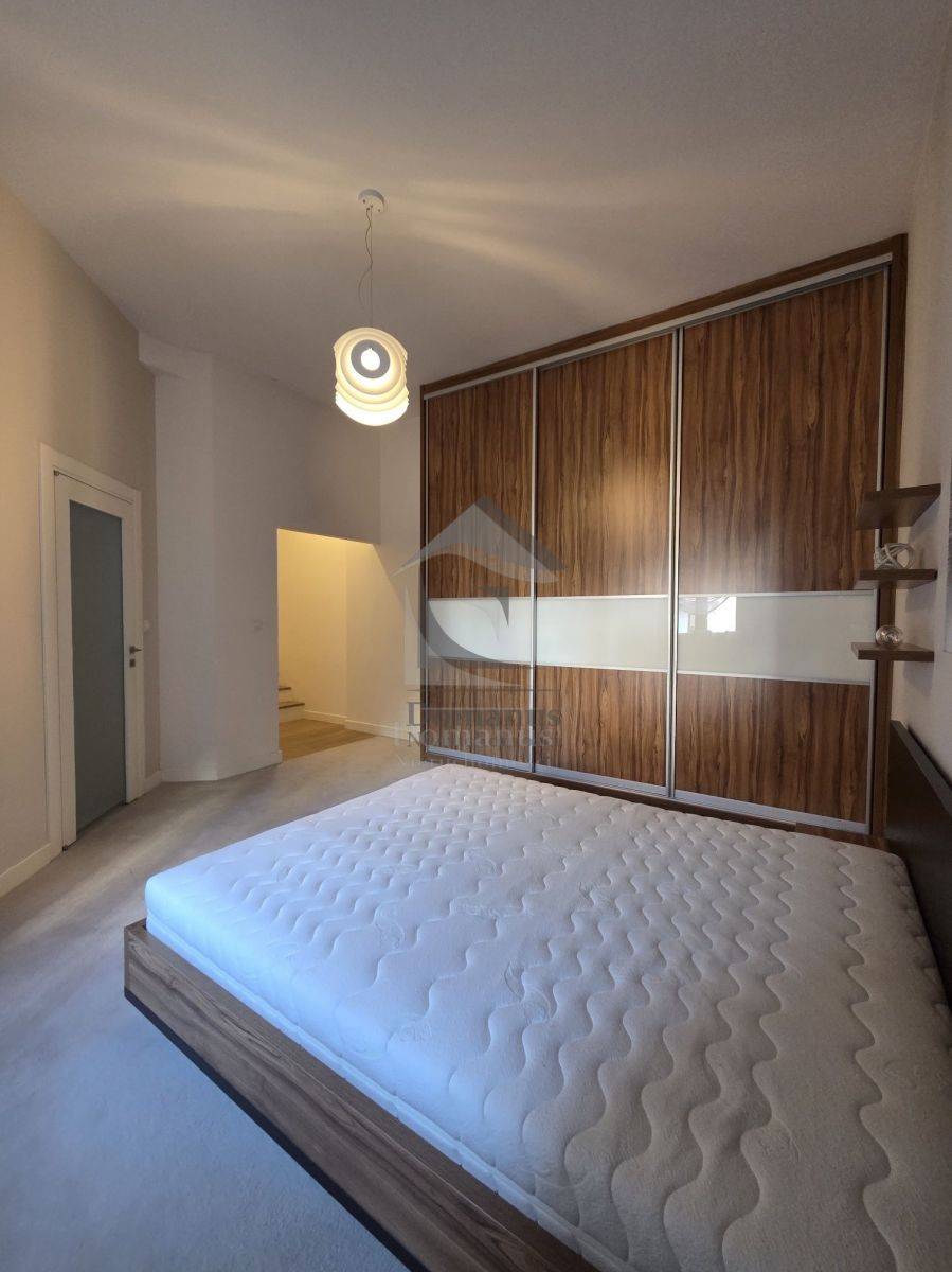 Układ wnętrza podzielony jest na dwie strefy: dzienną i prywatną. Strefa dzienna to funkcjonalny aneks kuchenny połączony z umeblowanym salonem oraz przedpokój z praktyczną szafą. Na półpoziomie znajduje się komfortowa sypialnia z dużym łóżkiem dwuosobowym i dużą szafą garderobianą, a także łazienka oraz osobne WC.