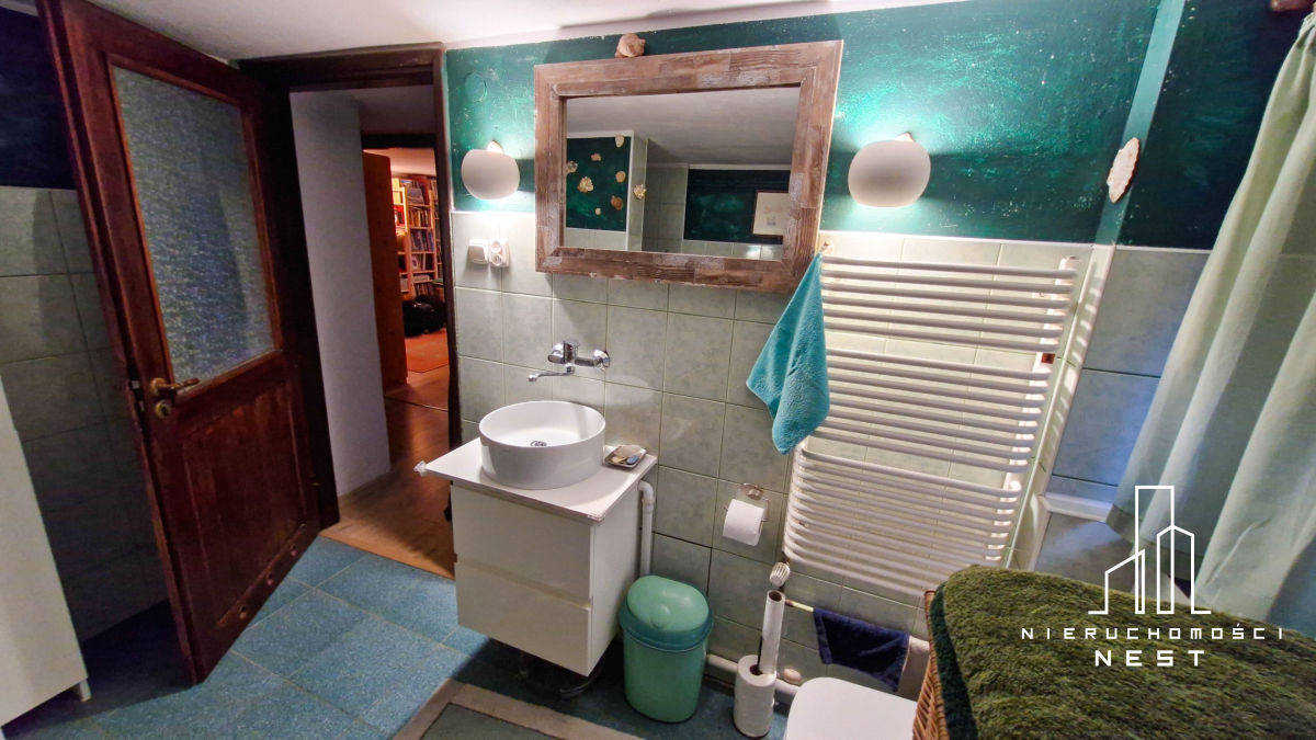 - w obniżonym przyziemiu (wysokość ok. 2,05 m) znajdują się dwa pokoje, garderoba, łazienka oraz korytarz