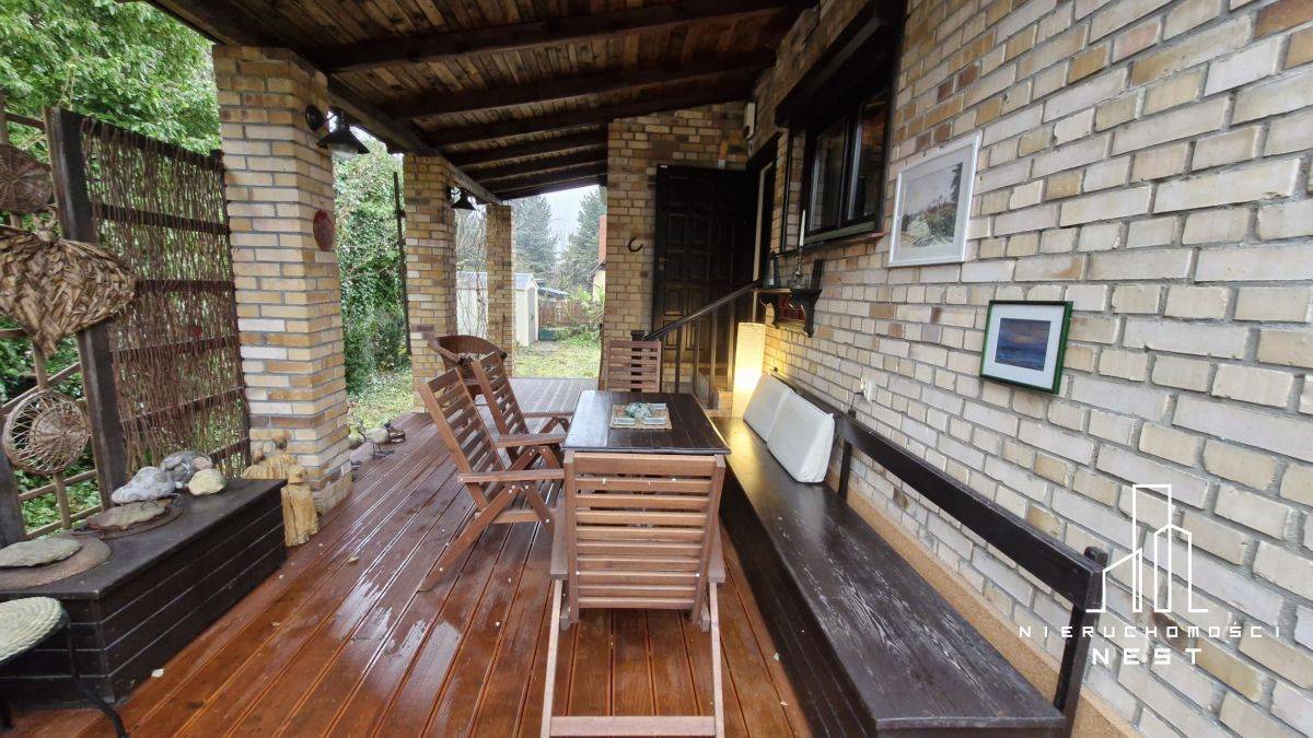 Działka o powierzchni 470 m2, ogrodzona, przy domu duży zadaszony taras oraz wiata na samochód.