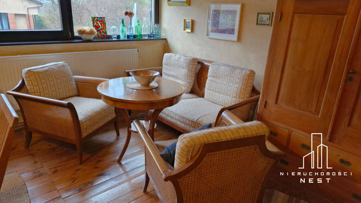 - w obniżonym przyziemiu (wysokość ok. 2,05 m) znajdują się dwa pokoje, garderoba, łazienka oraz korytarz